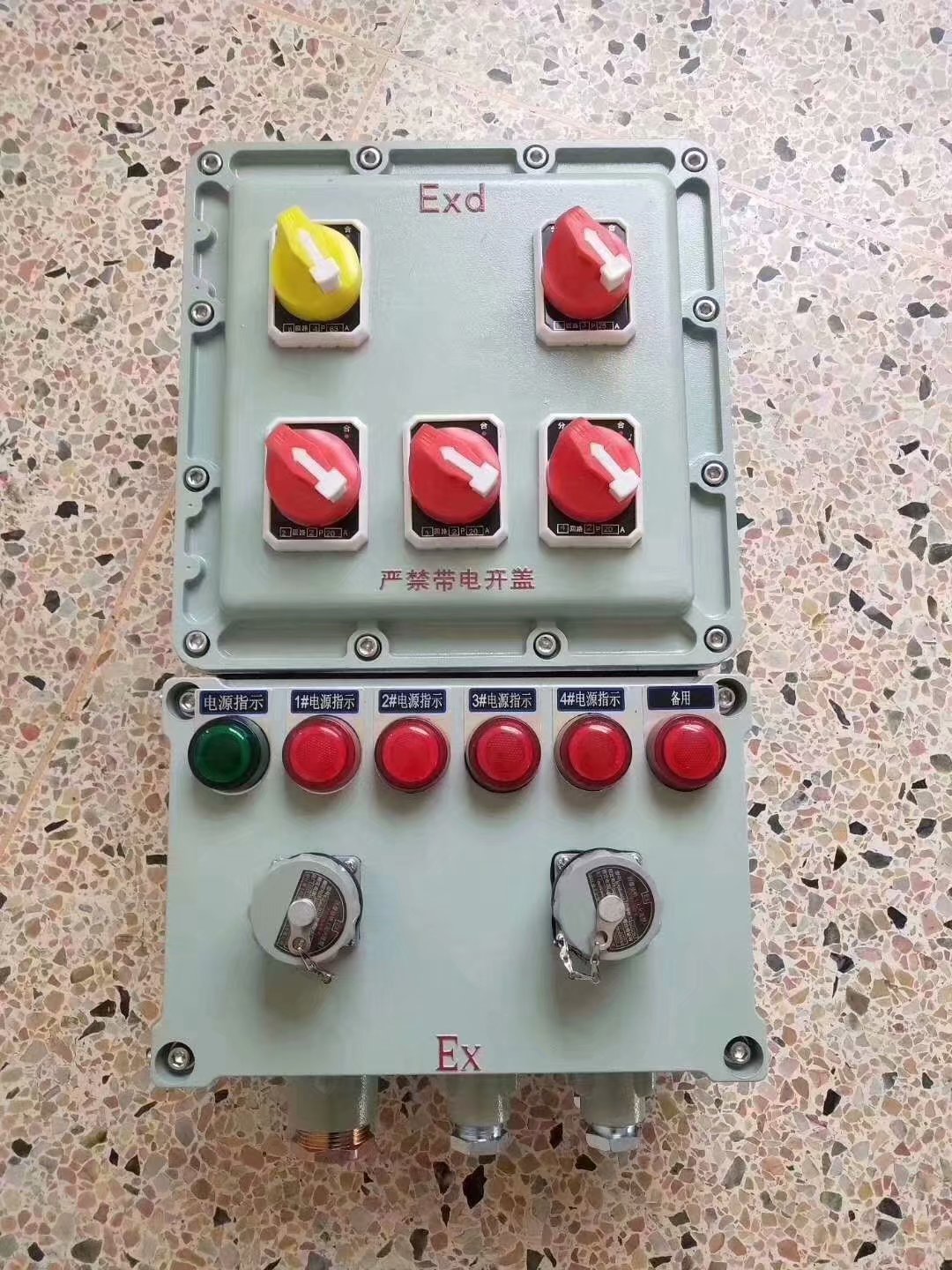 铸铝合金外壳,内部高强度钢管或电线布线,防爆配电箱类型:防爆照明箱,防爆动力箱,防爆控制箱,防爆控制柜,防爆配电柜,防爆操作箱,防爆箱,防爆起动箱,防爆电动机起动器,防爆软起动,防爆变频箱,防爆星三角起动箱,防爆自耦合降压起动箱,防爆磁力起动箱,防爆电源插座箱,移动式防爆箱,BMG防爆配电箱等小型断路器,并可装设漏电开关。