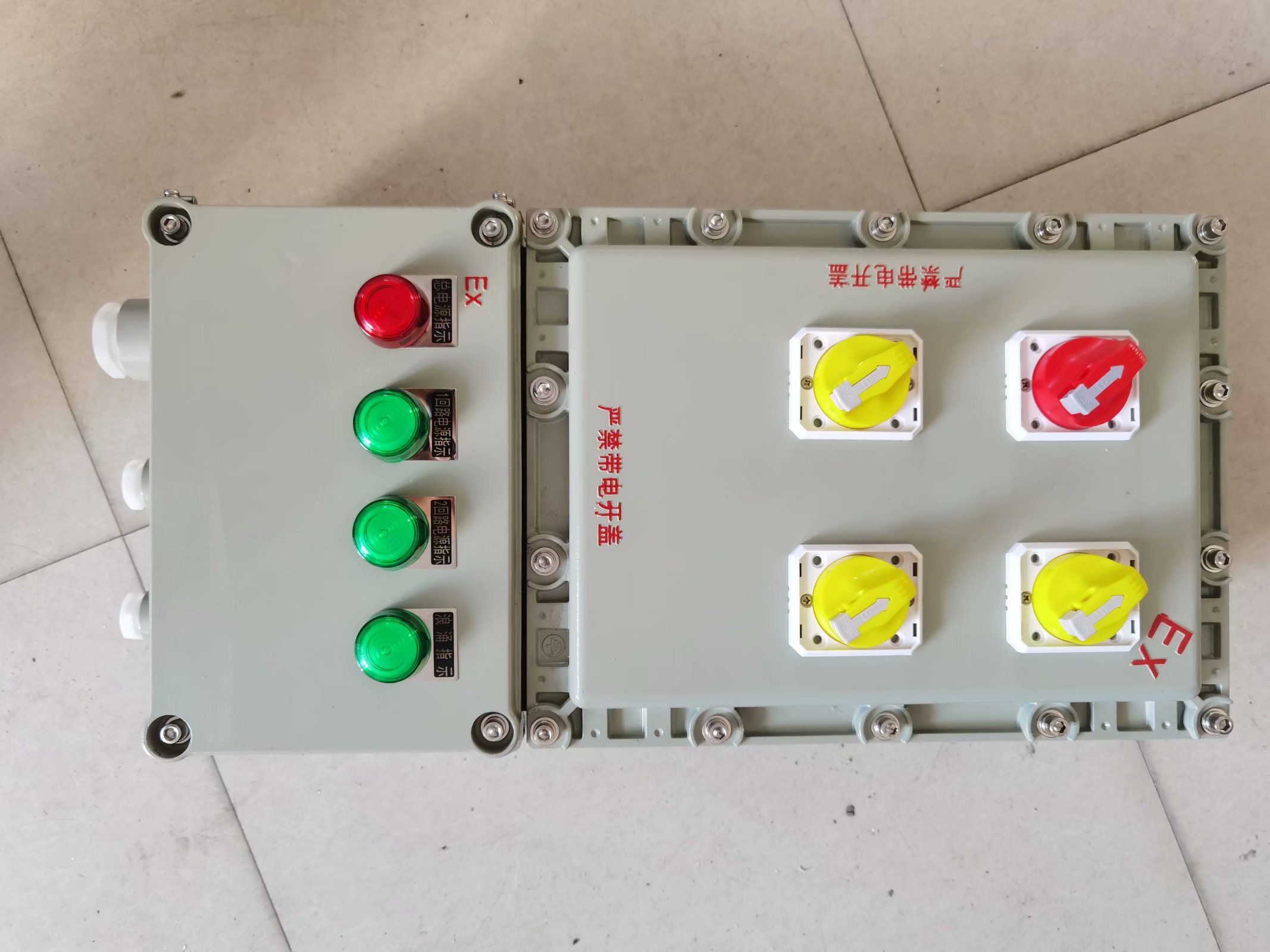 本产品为复合型,开关盒使用隔爆构造,母线盒和插座盒使用增加的安全性构造。