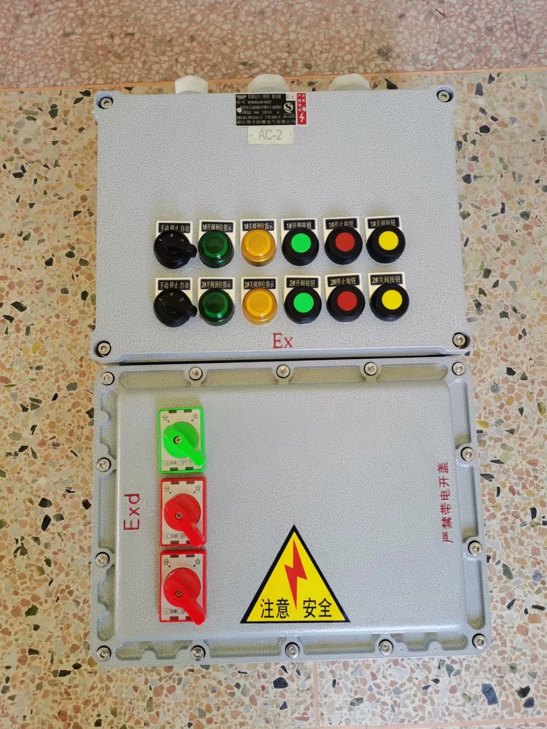 具有过载和短路保护功用,BXM(d)防爆配电箱适用于石油化工厂,石油平台,化工,制药,煤炭,冶炼,造船,纺织和其他易燃易爆场所使用电线,防爆配电箱一种具有防爆性能的配电箱,主要包括防爆照明配电箱,防爆配电箱,防爆防腐配电箱等。请严苛按照产品手册安装,并有电工来安装和调试防爆配电箱类别:防爆照明箱防爆动力箱,防爆控制箱,防爆控制柜,防爆配电柜,防爆操作箱,防爆箱防爆起动箱,防爆电机起动器,防爆软起动,防爆变频箱,防爆星三角起动箱,防爆自耦降压起动箱防爆磁力起动箱,防爆电源插座箱,移动防爆箱,BMG防爆配电箱等。公司的产品交付给第三方进行运输,因此不能保证产品如果损坏,到货后发现产品损坏,请及时与我们公司联系。本产品为复合型,开关盒采用防爆结构,母线盒和插座盒采用增强的安全结构